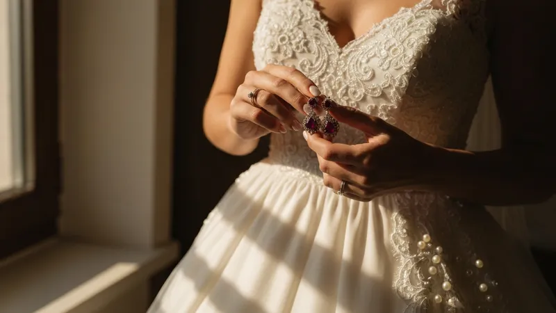 Comment assortir des boucles d'oreilles rubis avec une robe de mariée ?